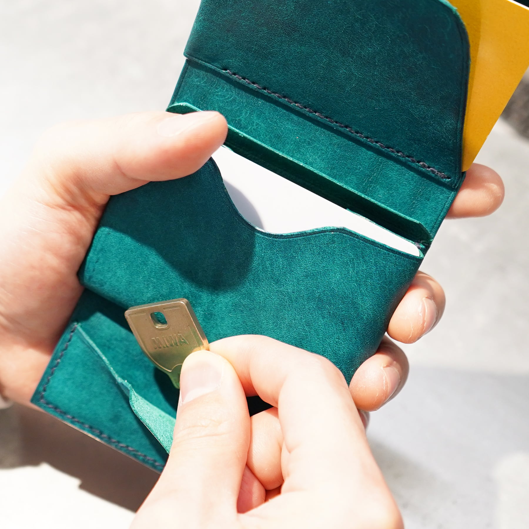 ※商品は最初、革が引き締まった状態ですので若干カード等入れにくさを感じることがございますが、お使いいただくほどに、革の繊維がゆるみ手馴染みが良くなり、カードも入れやすくなってまいります。