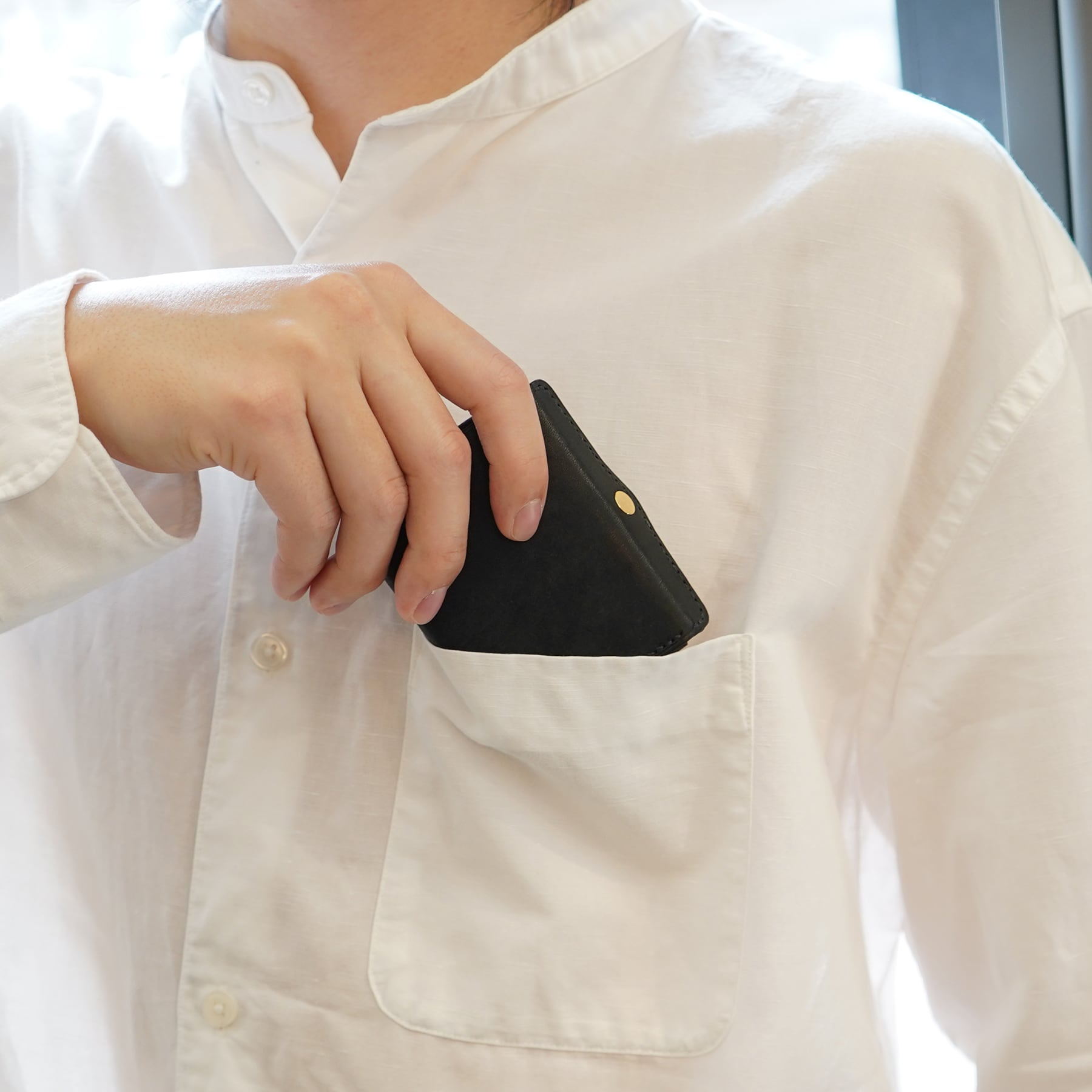 シャツの前ポケットにも余裕で収納!小さく薄くボッコリしにくい。
