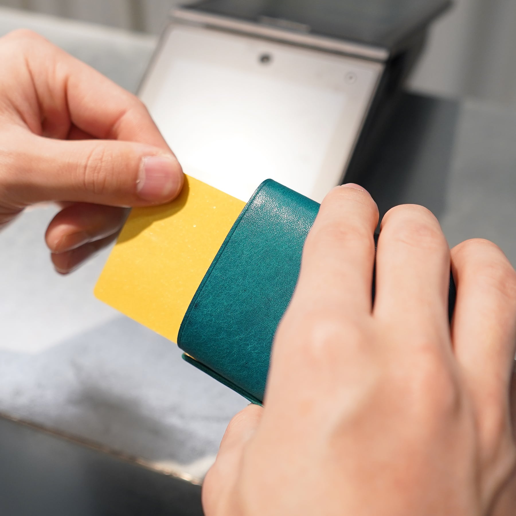デザインを徹底的に考え抜き改良を加えながら、技術認定1級職人が試作を繰り返し、ようやく最終サンプルが完成。それをもとに、コンパクト財布を中心に多数の製品を手がけるファクトリーで、熟練した一流の職人が本生産を手掛けます。本当に良いと思える素材を使って生み出したその「timikティミック」が、手に取った方にとっての相棒になることを信じています。