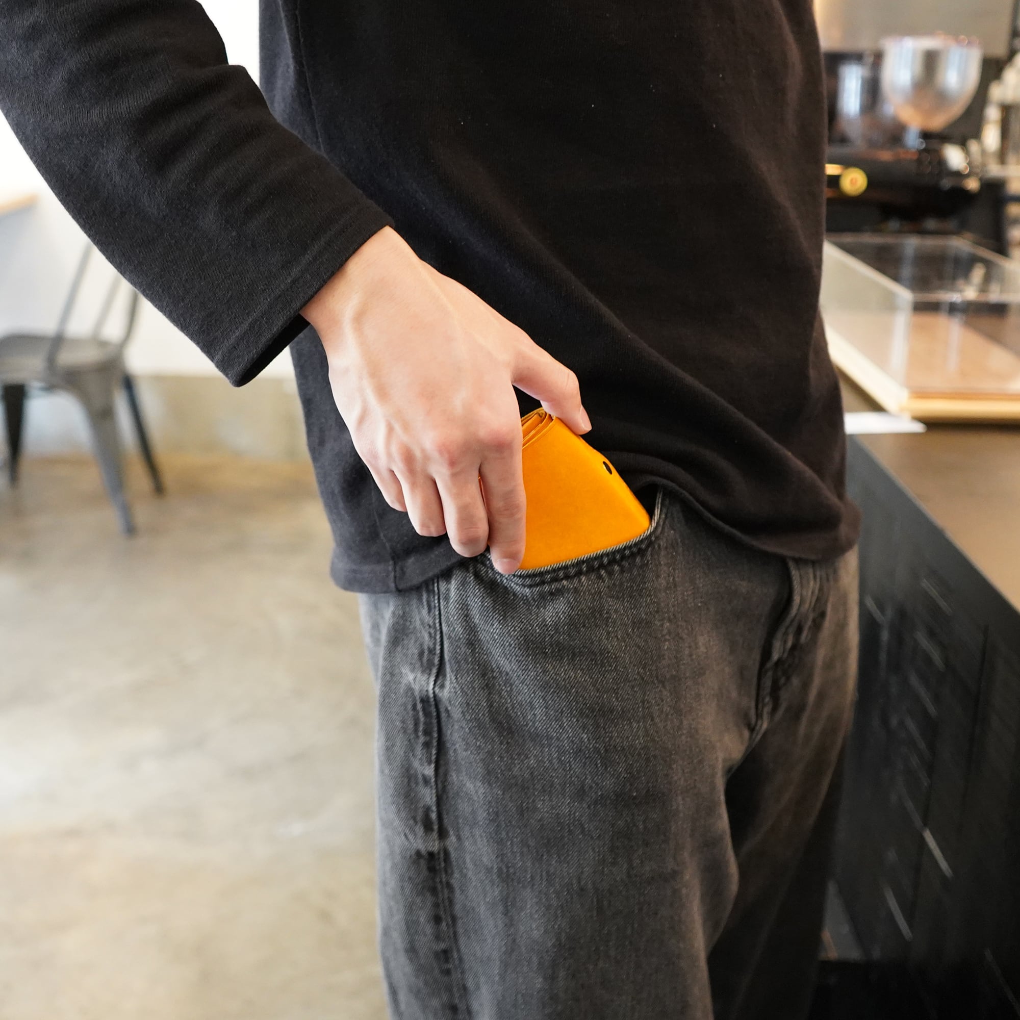 後ろポケットにもすっぽり収まり、ひっかかりなく、シュッと出し入れ。