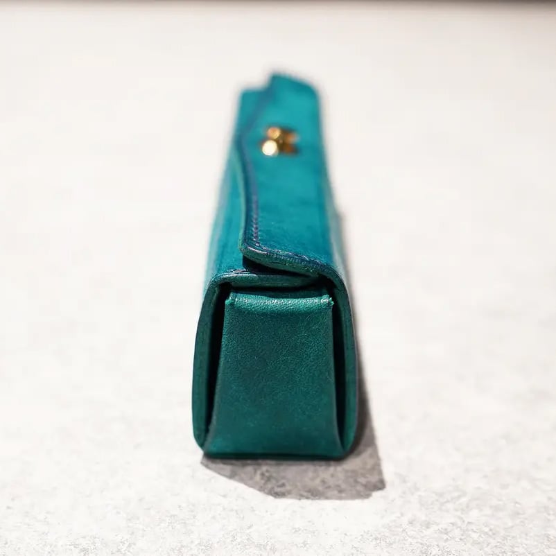 革の床(裏)部分をしっかり加工していない革は、繊維が毛羽立ちポロポロと、とれてくるものがございます。『スキットルペンケース』は1枚1枚しっかり裏面加工を施し丁寧に仕上げています。