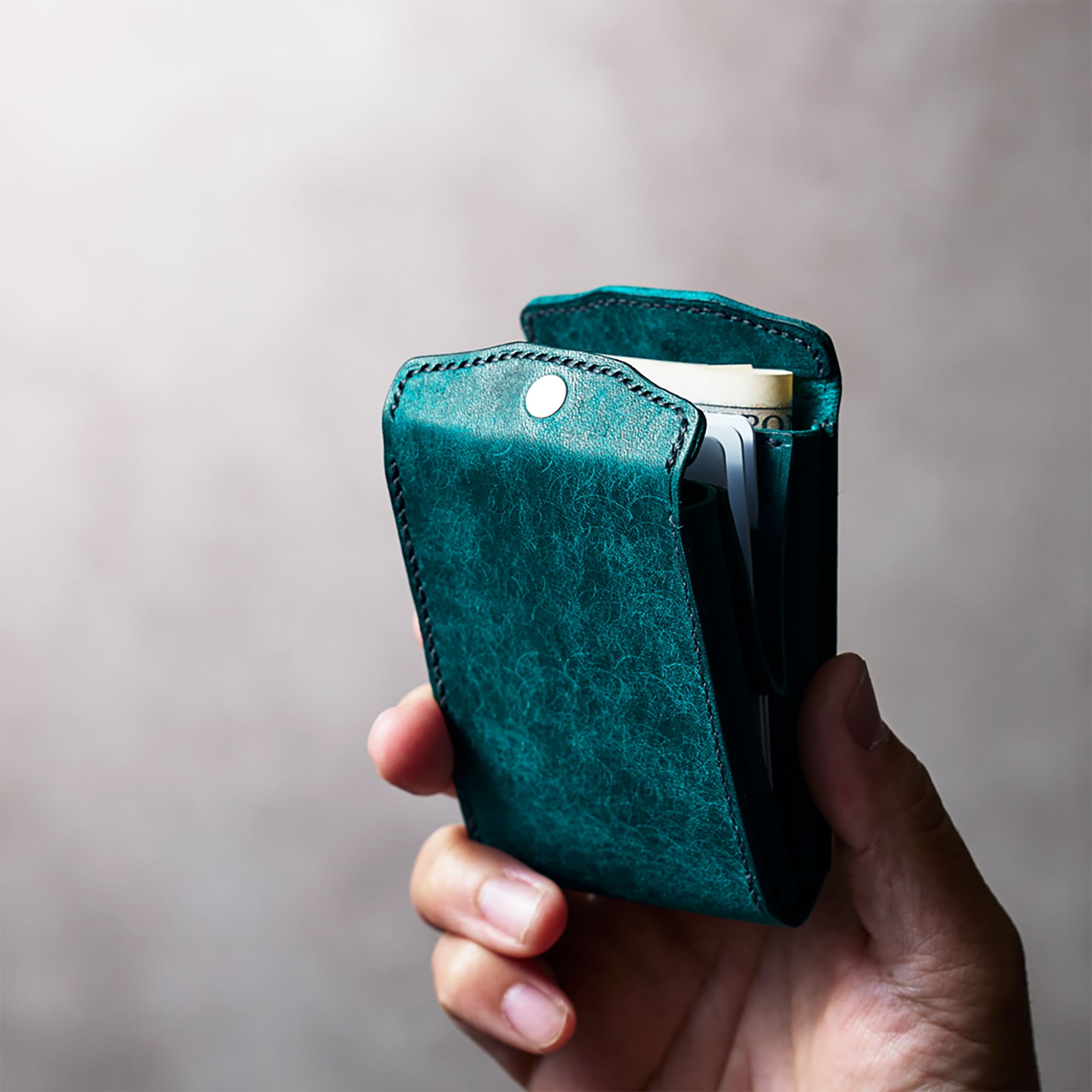 デザインを徹底的に考え抜き改良を加えながら、技術認定1級職人が試作を繰り返し、ようやく最終サンプルが完成。それをもとに、コンパクト財布を中心に多数の製品を手がけるファクトリーで、熟練した一流の職人が本生産を手掛けます。本当に良いと思える素材を使って生み出したその「スナップホルダー」が、手に取った方にとっての相棒になることを信じています。